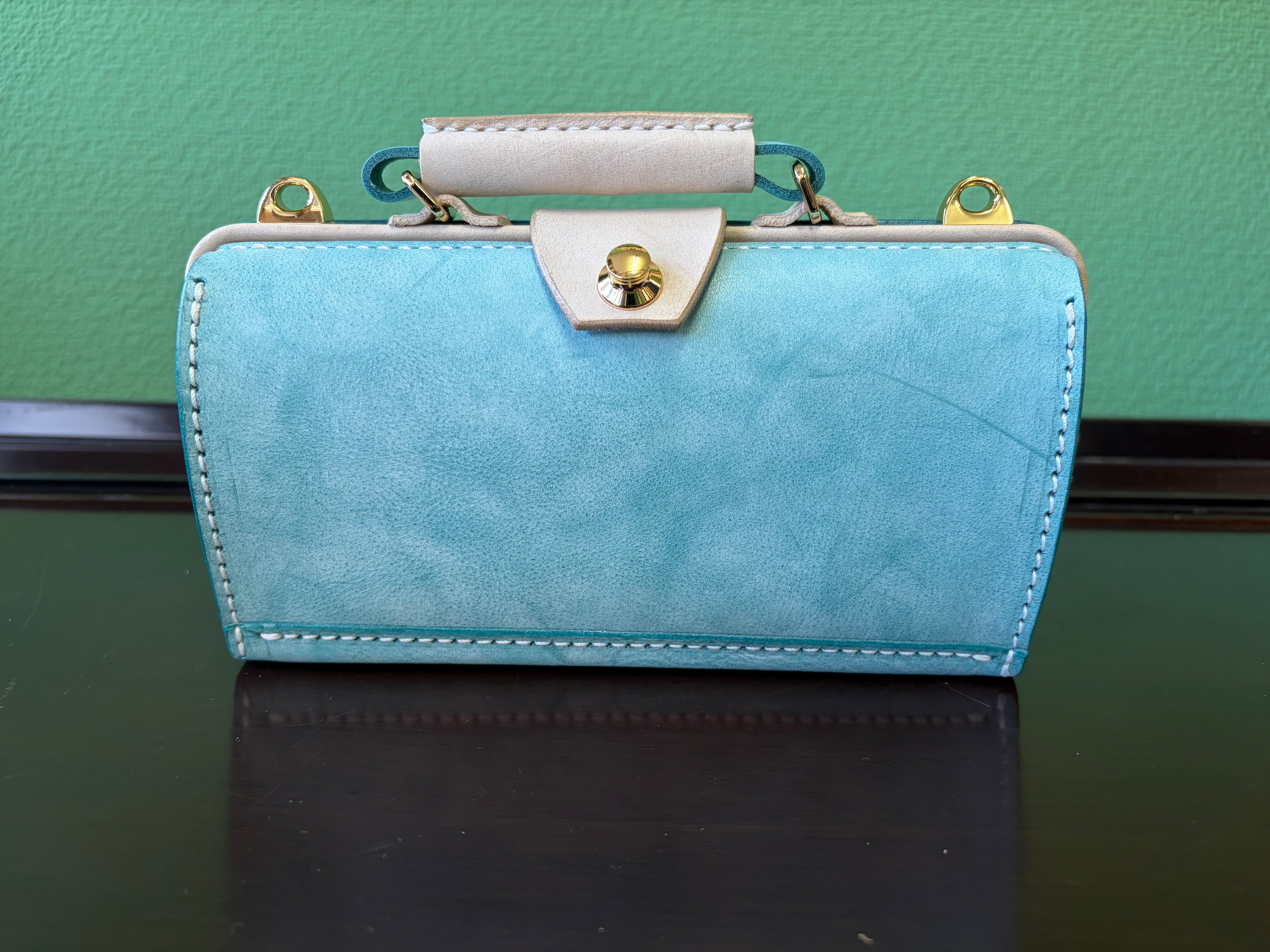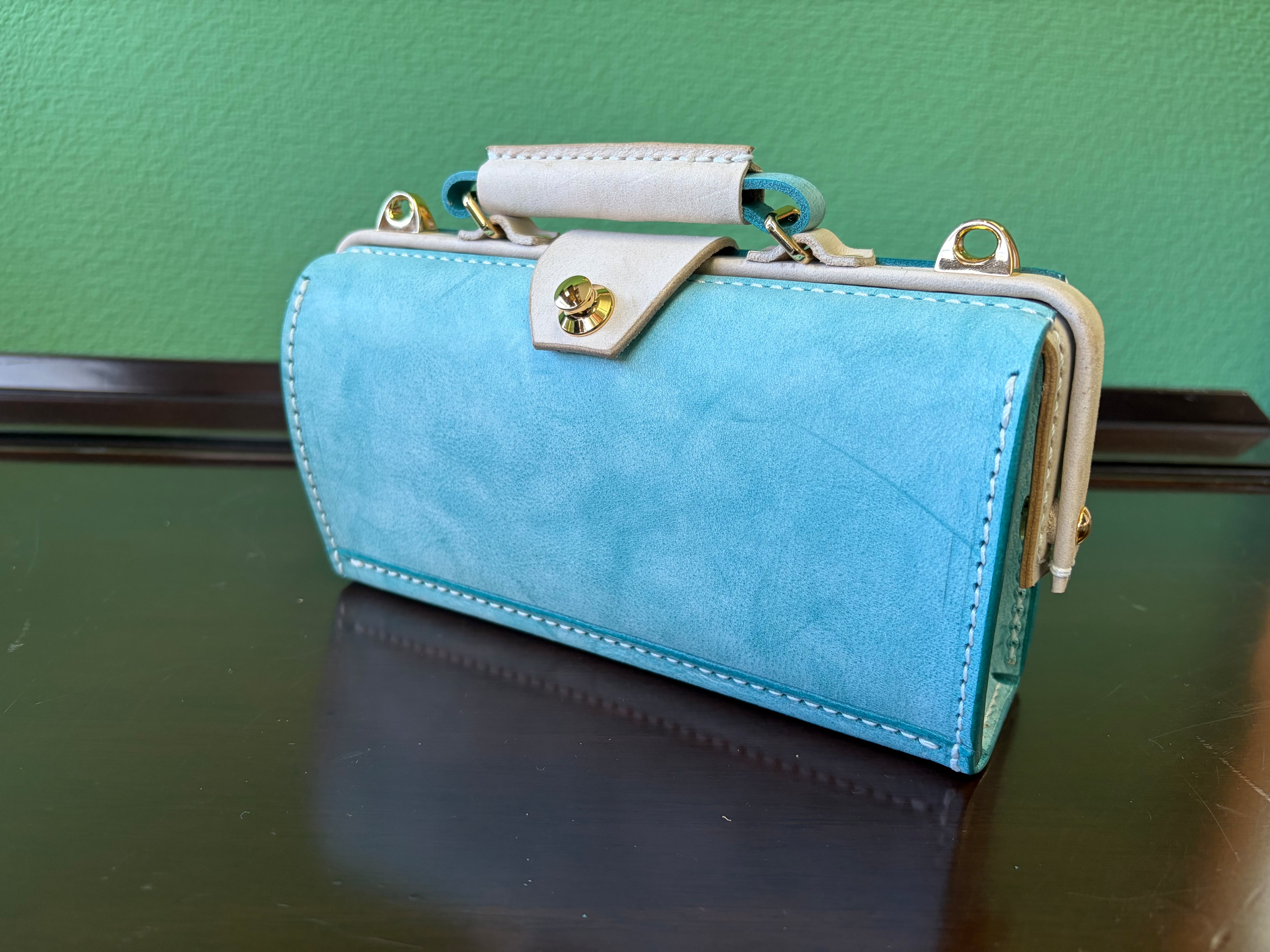 身軽にお出かけするときに、お財布とポシェットが一緒ならとっても便利と思って仕立てました。お財布エリアはカードが6枚と小銭いれとお札が入ります。